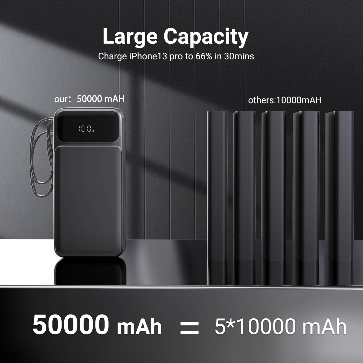 Portable Charger Power Bank 50000Mah- 7 Outputs & 3 Inputs Usb-C 22.5W Fast Charging Battery Pack With Built-In Cables And Ports