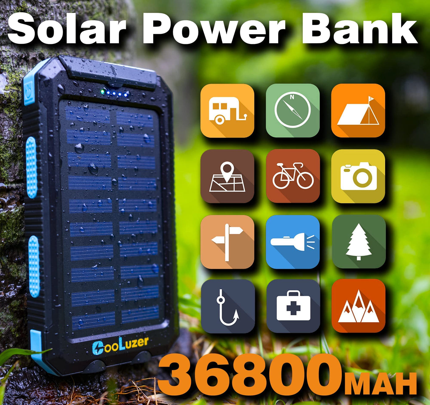 Solar Charger Power Bank 36800Mah With 18W Pd 5V*3.1A Fast Charging, Qc3.0 Portable Charger Solar Power Bank,Ip67 Waterproof Cam