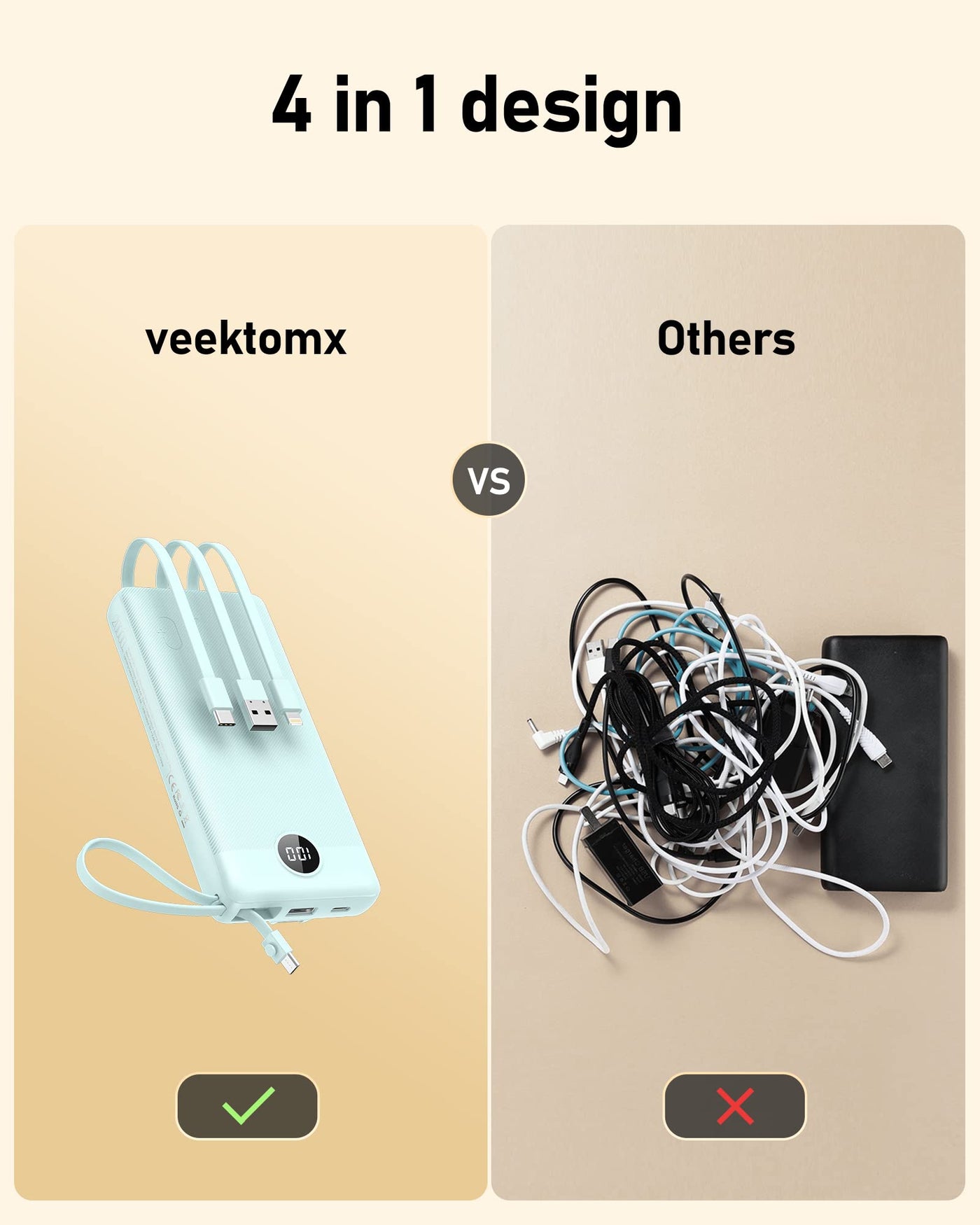 Veektomx Portable Charger With Built In Cables, 20000Mah Power Bank For Iphone, Fast Charging Usb C Battery Pack, Travel Essenti