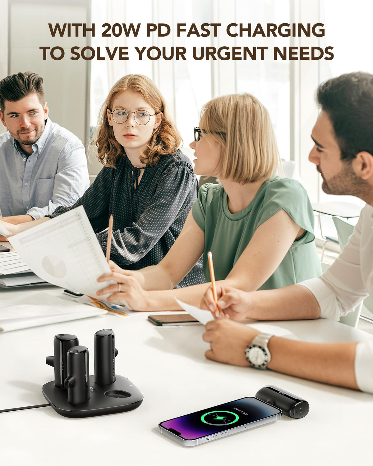 Viyisi Iphone Charger Kit: Keep Your Apple Devices Powered Up With This Versatile Charging Set! The Kit Includes A Magnetic Charging Dock And 4 Compact, Fast-Charging 5000Mah Power Banks. Say Goodbye To Tangled Cables - The Cordless Convenience Allows For Hassle-Free Charging. Perfect For Home, Office, And On-The-Go Use. Experience Lighting-Fast Pd 20W Charging, Adding 50% Power To Your Iphone In Just 25 Minutes. It'S Your Reliable Emergency Backup! Ideal For Travel, Road Trips, Or Sharing With Friends. Order Now And Enjoy The Convenience Of This Premium Charging Solution! 24-Hour Hassle-Free After-Sales Service Available.
