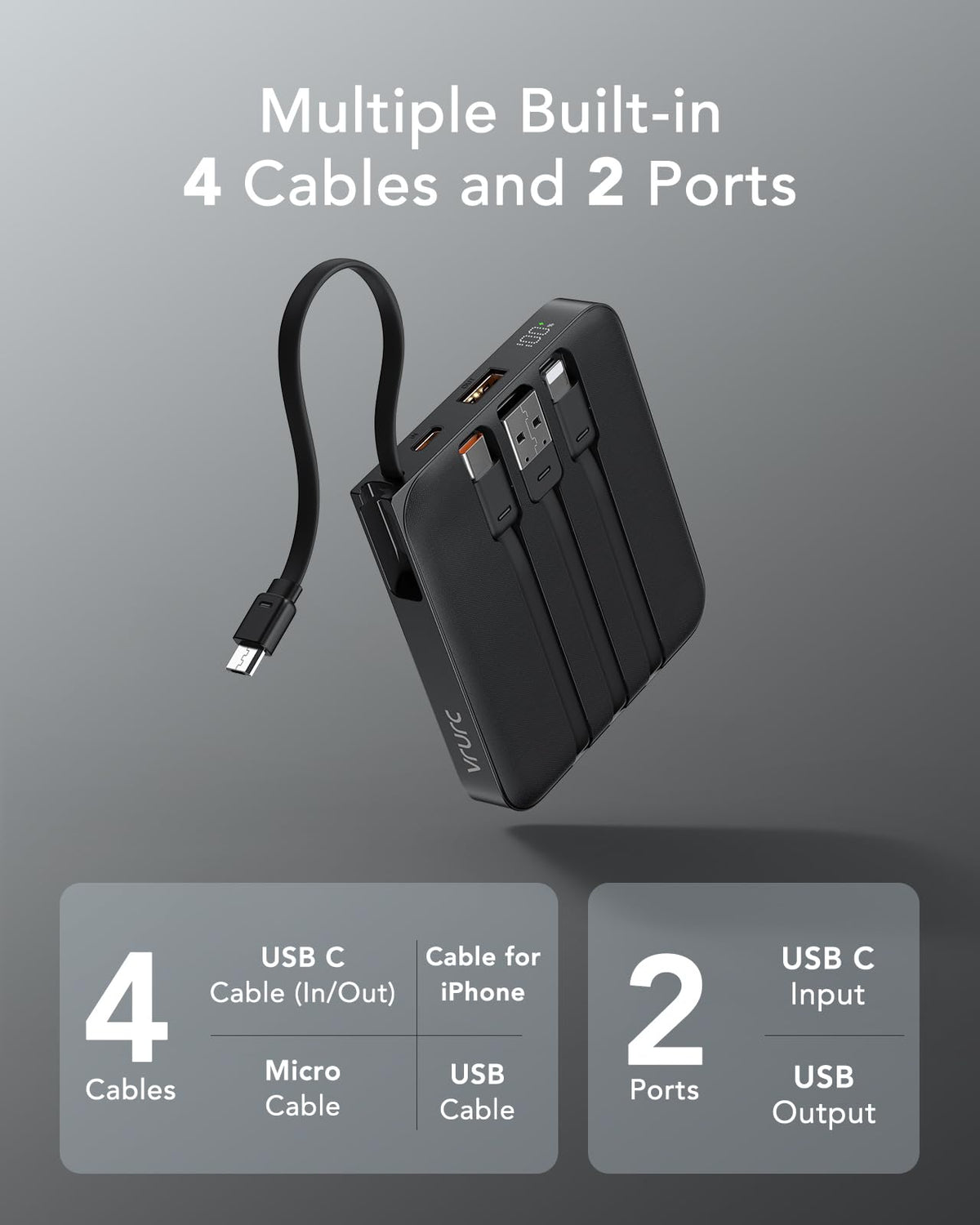 Vrurc Portable Charger With Built In Cable, 10000Mah 22.5W Fast Charging Usb C Battery Pack, Cell Phone Power Bank For Iphone 16