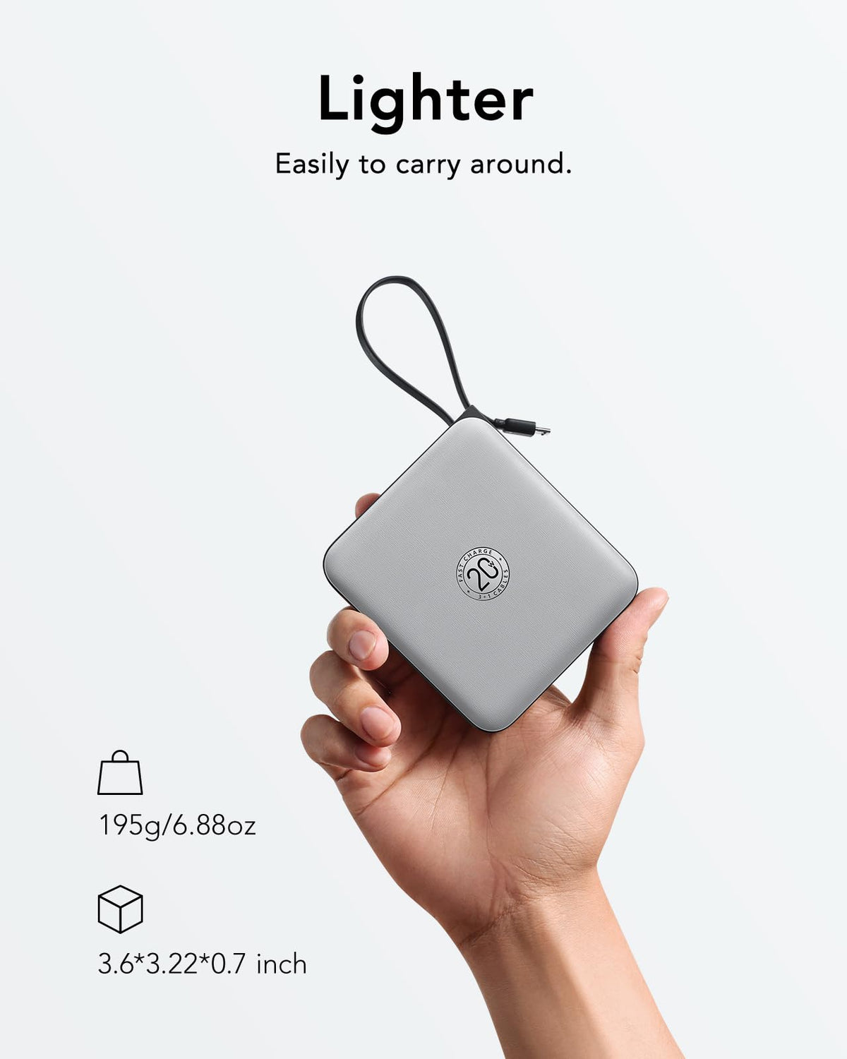 Pocket-Sized Design: Measuring just 3.6 x 3.23 x 0.7 inches and weighing only 6.87 Oz/195g, this power bank easily fits into your pocket or bag, adding no extra weight to your journey.