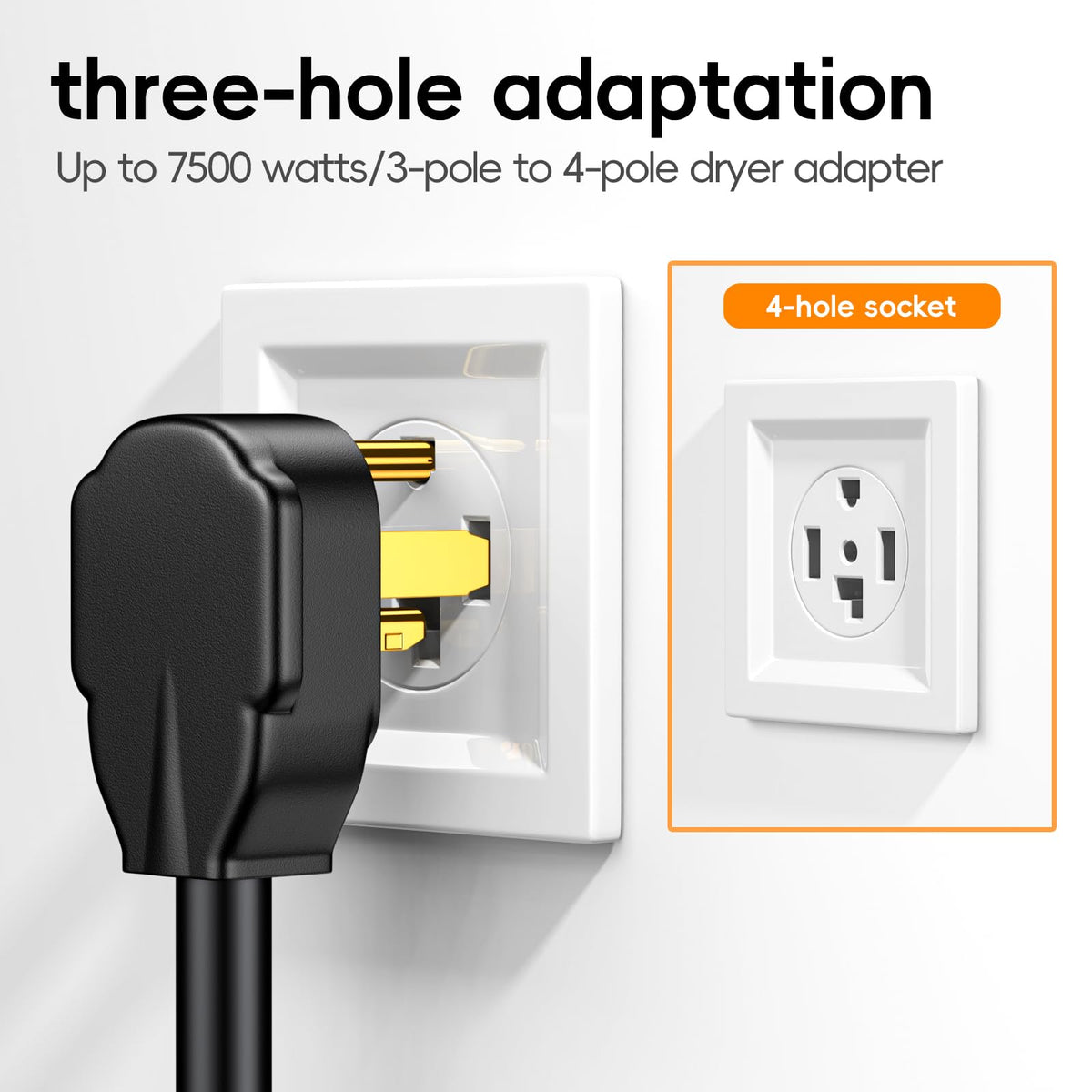 Q: Can this adapter be used for all types of dryers?A: This adapter is specifically designed for dryers that require a conversion from a 4-prong to a 3-prong configuration. Ensure your dryer is compatible with the NEMA 10-30R socket for optimal function.