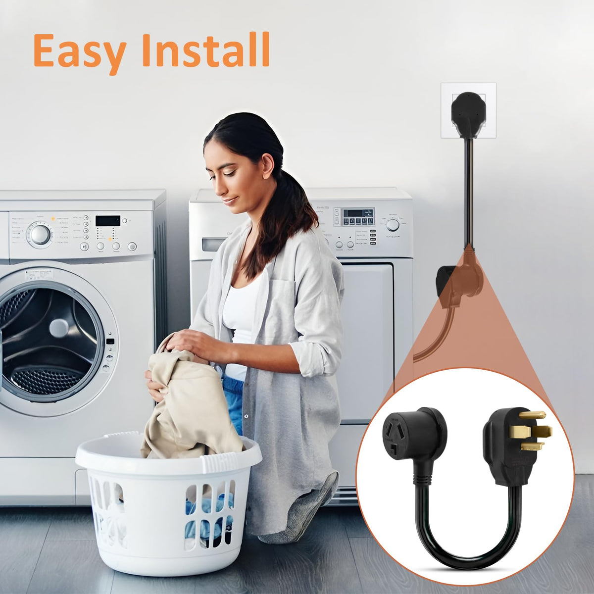 Q: How easy is it to install the dryer outlet adapter?A: Installation is straightforward; simply plug the adapter into your dryer’s outlet and connect it to the power source. No complicated wiring or electrician assistance is required.