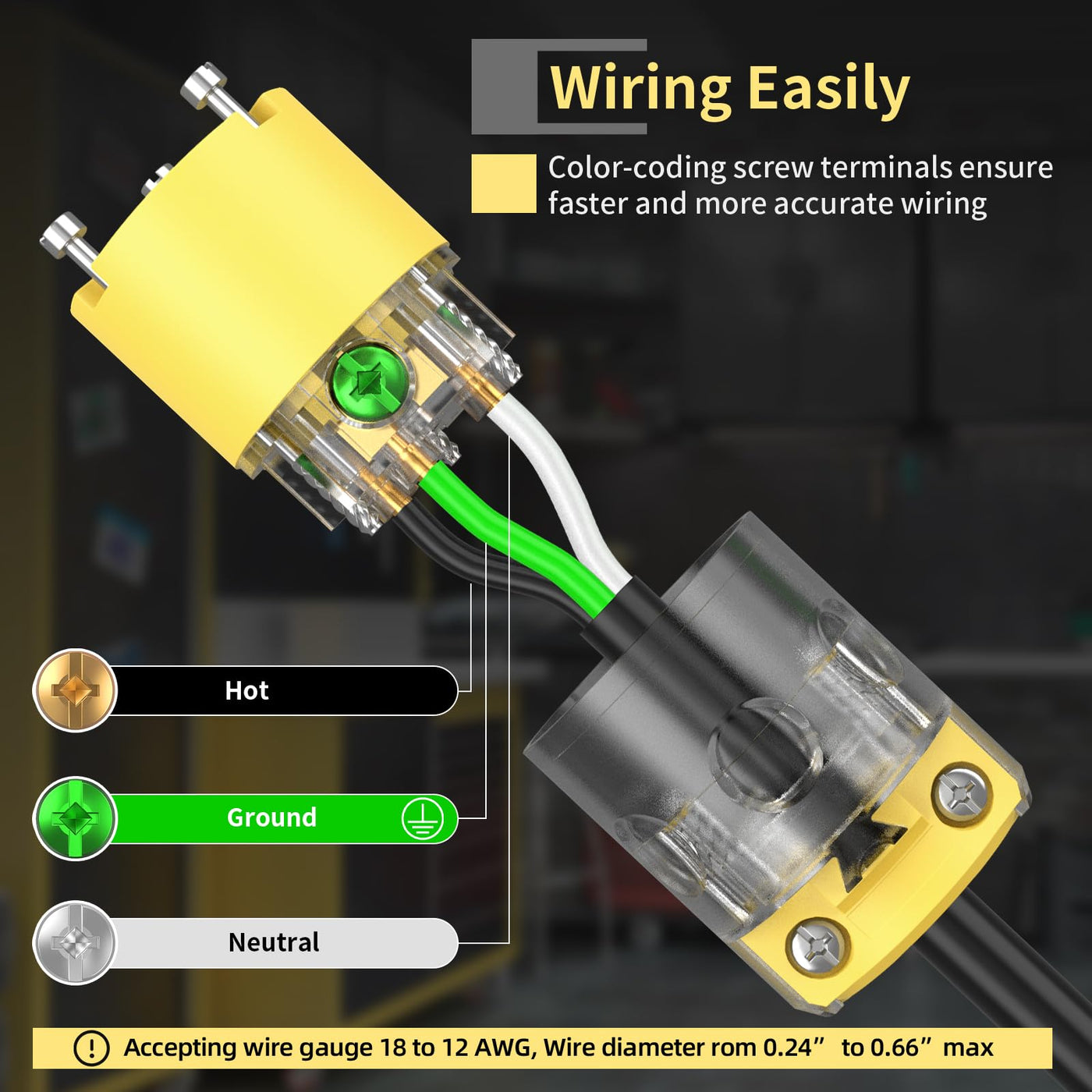Q: How easy is it to assemble these electrical plugs?A: These plugs are designed for quick and easy assembly, featuring ergonomic housing, alignment keyways, and color-coded screw terminals. The adjustable rear cord clamps also accommodate different wire sizes, making the installation process straightforward for both DIY enthusiasts and professionals.