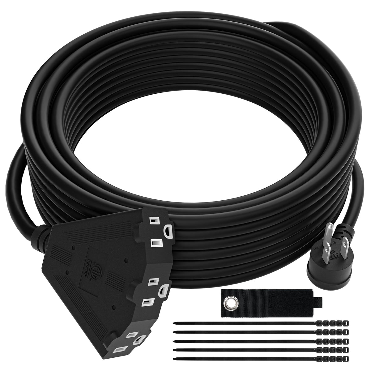 Outdoor Extension Power Cord Convert 1 Outlet Into 3 Grounded. Heavy Duty Cord Features High- Quality 14Awg X 3 Copper Wire Cores And Flexible Blank Pvc Jacket. 3-Pronged Power Cable With 3 Ac Outlets (Fan-Shaped Design For More Space Saving), Nema 5-15P To Nema 5-15R, Etl Listed. Sjtw, 14Awg Durable Wire X 3C, 15 Amp, 125 Volt, 1875 Watt.
