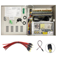 Compatible:All 12V Dc Hd 4K/5Mp/4Mp/3Mp/2Mp/1080P/720P Tvi, Ahd, Cvi And Analog Security Cameras. Support :You Can Supply Up To 18 Cameras. Please Hook Up Only 1 Camera Per Port. Auto-Reset: Each Port Is Protected With Auto-Reset Ptc Fuses Which Means These Fuses Will Not Blow. Input Voltage : 100-240V Ac~, 4A 50/60 Hz Output Voltage : 12V Dc 5 Amper ( 5000 Ma ) Condition : New In Box. Application: Multipurpose As 12V Dc Security Cameras, Led Strips And Led Lighting Etc. It Has Key Lock Prevent Unauthorized Access, Individual Led Power Indication. Warranty : 1 Year Warranty. You Can Contact With Us For Repair/Replacement Purpose.