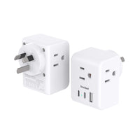 Q: What devices can I charge with the 2 Pack Australia New Zealand Power Plug Adapter?A: You can charge various devices such as cell phones, tablets, power banks, and other electrical chargers with the 2 Pack Australia New Zealand Power Plug Adapter. It features 3 standard American outlets and 3 USB ports (1 USB-A and 2 USB-C), allowing you to charge up to 6 devices simultaneously.