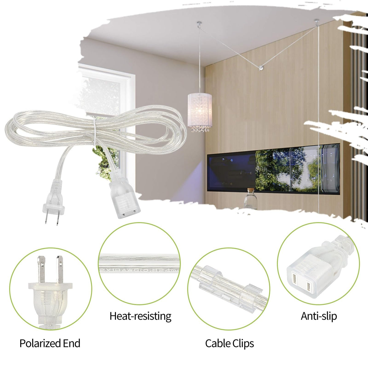 Q: How can I organize the extension cords to avoid clutter?A: The 2 Pack Clear Extension Cord comes with eight cable clips that help you secure and organize the cords neatly along walls or floors, reducing clutter in your space.