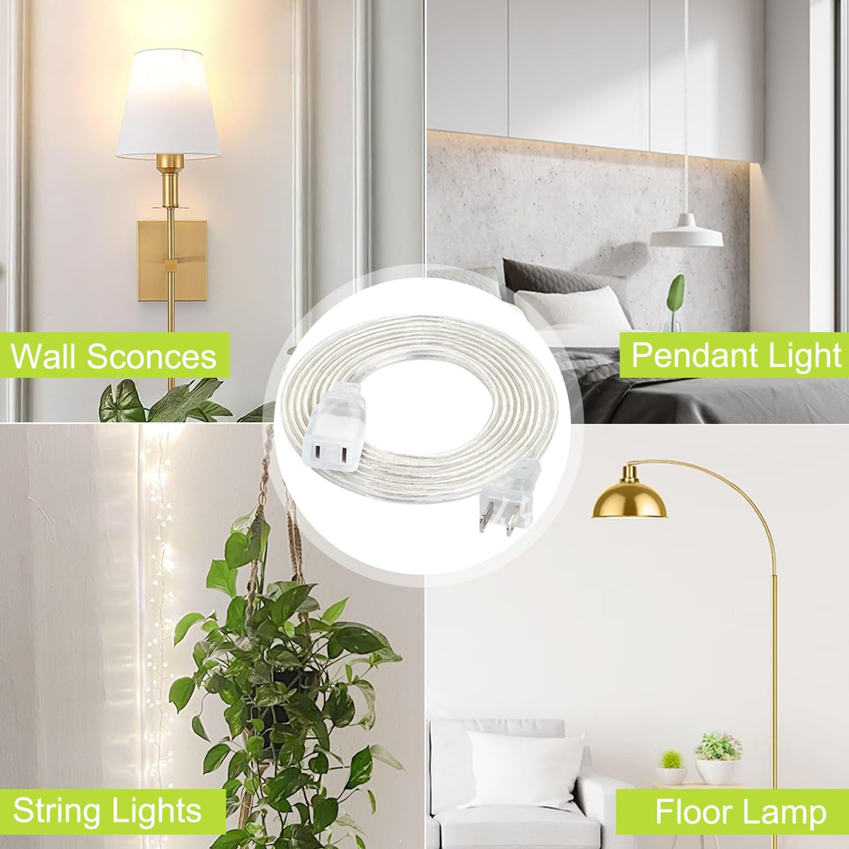2 Pack Clear Extension Cord, 10 Ft Extension Cords, Ul Certified Power Extension Cord, 2 Prong Extension Cord Male To Female, 2X