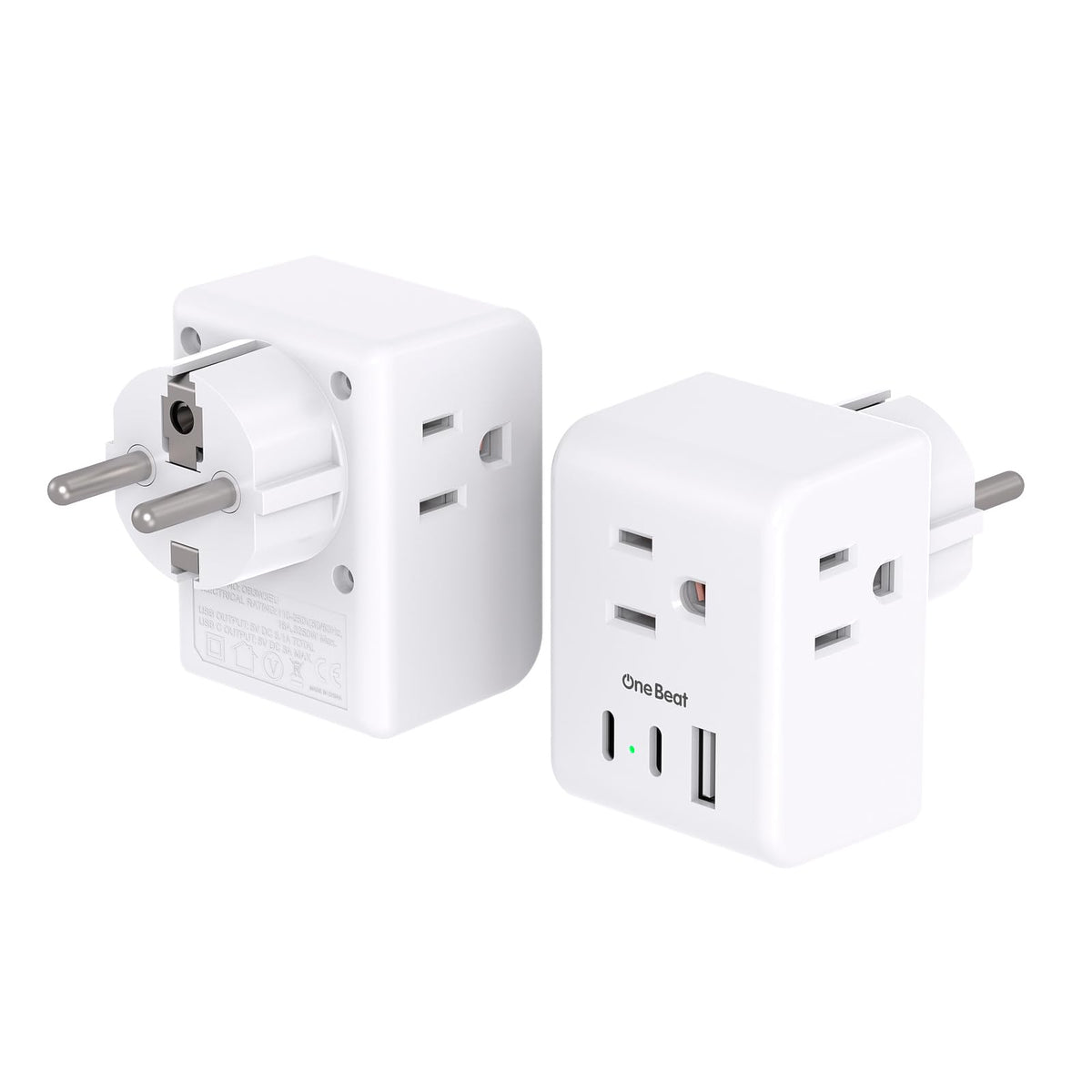 2 Pack Germany France Travel Plug Adapter With 3 Outlets 1 Usba 2 Usb C, One Beat Type E/F International Power Adapter, Travel E