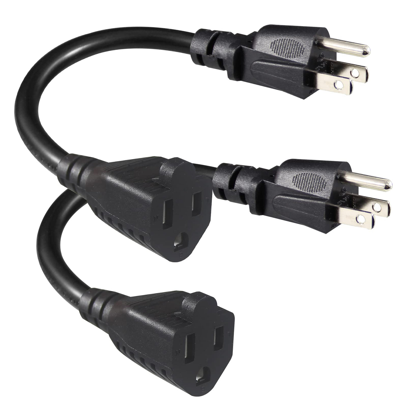 [2 Pack] Short Power Extension Cord 6Inch Black 3 Prong Mini Indoor Grounded Extension Cord,16Awg Small Electrical Ac Extensio
