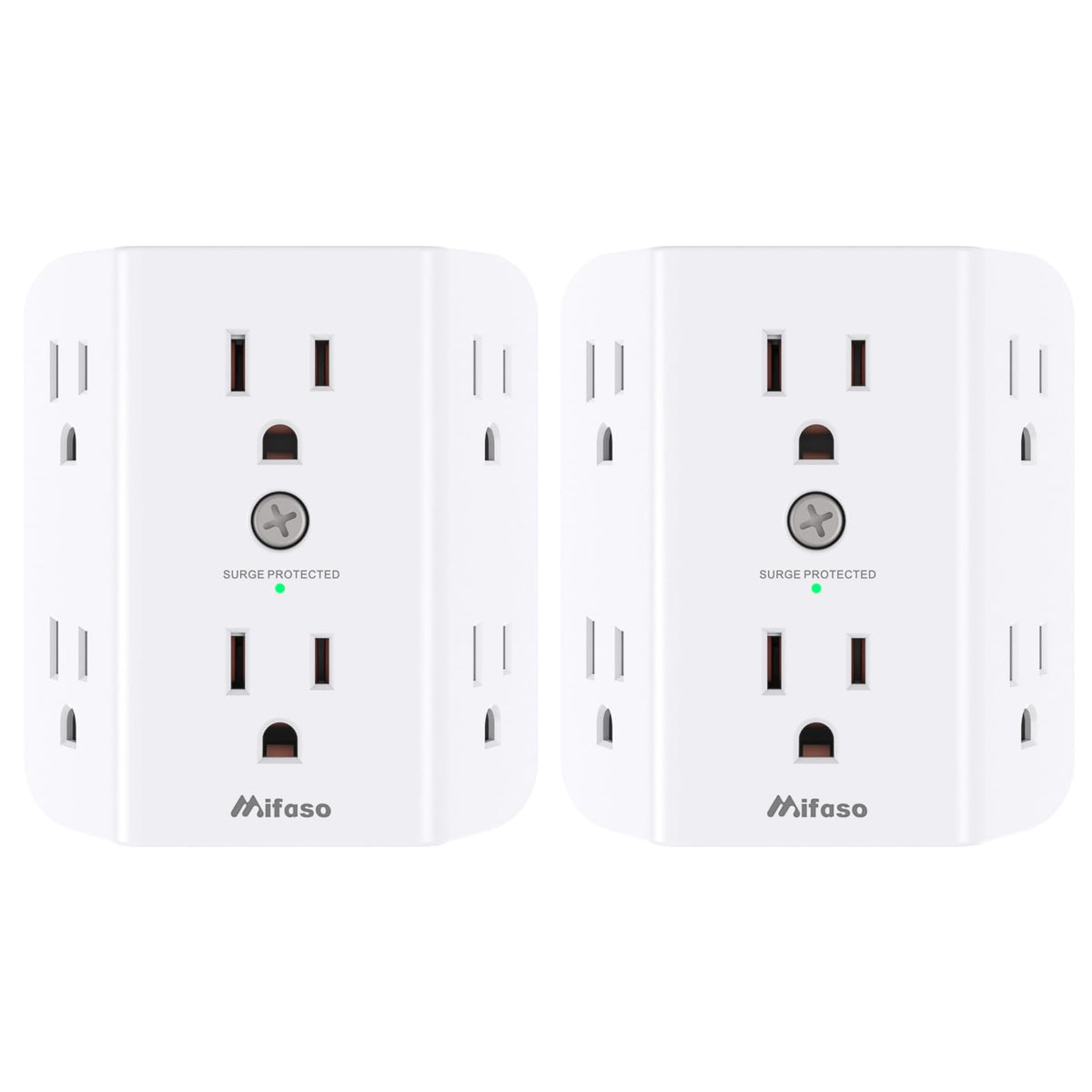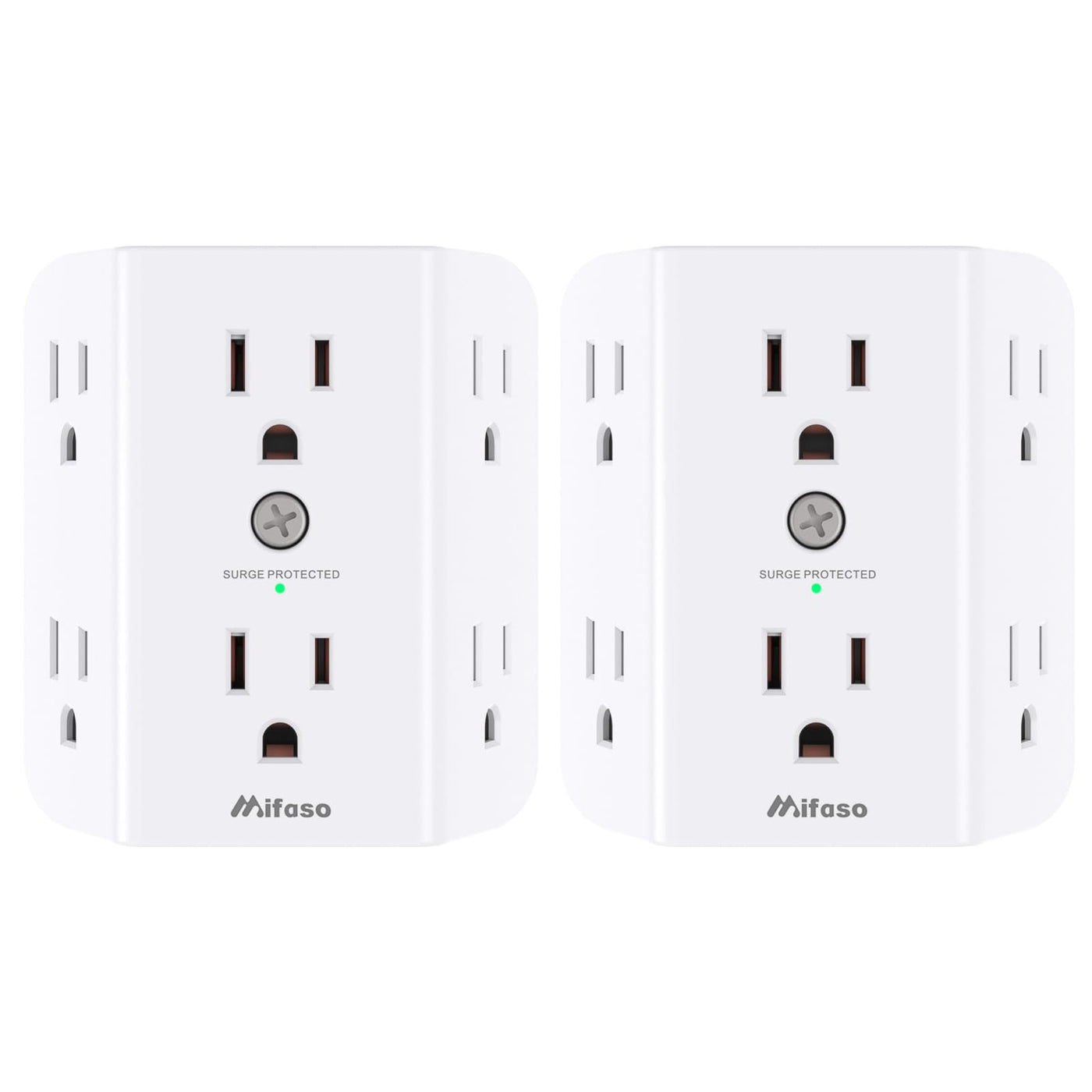 Q: How many devices can I charge with the 2 Pack Surge Protector Outlet?A: With the 2 Pack Surge Protector Outlet, you can charge up to 12 devices simultaneously by plugging in both outlet extenders, which convert one wall outlet into 6 AC sockets each.