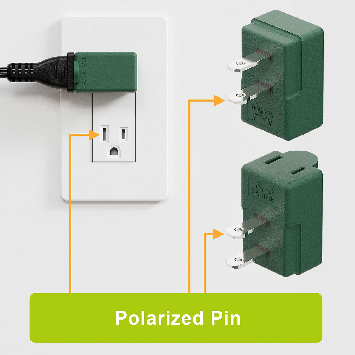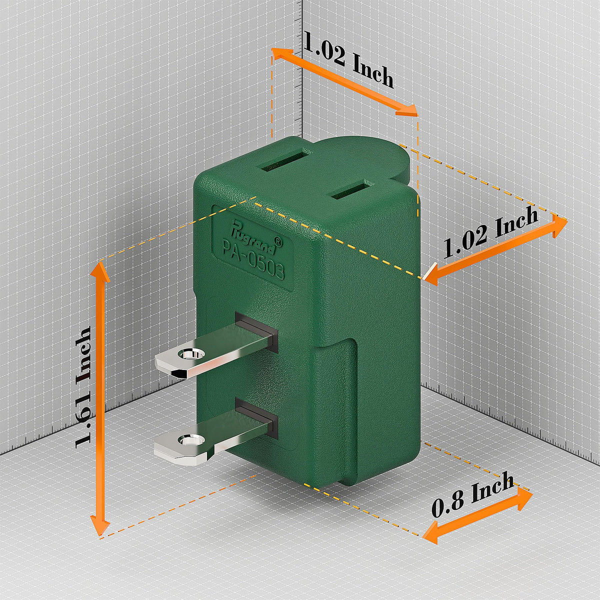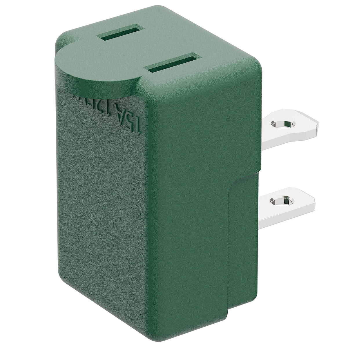 Polarized Nema 1-15P Male To Female Vertical L Type Ac Power Adapter Rated @15A 125V, Material: Pvc Molded 15A/125V 1200W Green Color Plugrand Sku.# Pa-0506G
