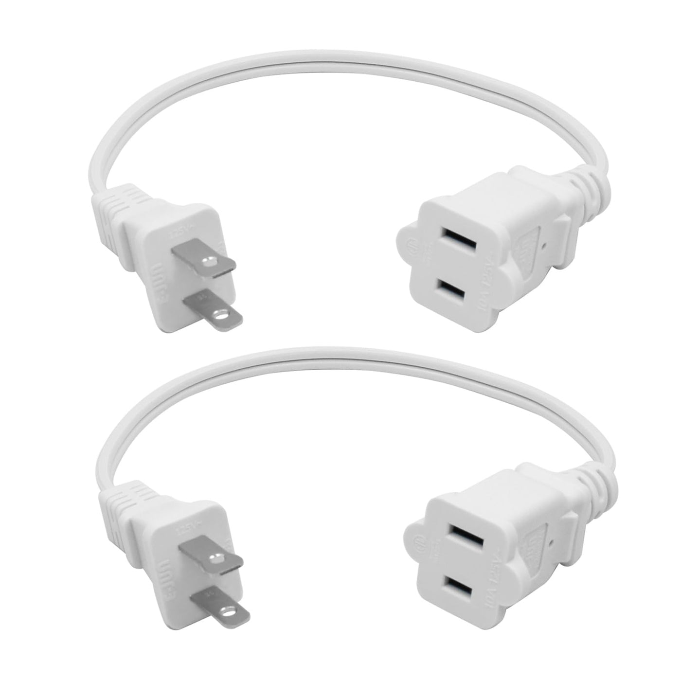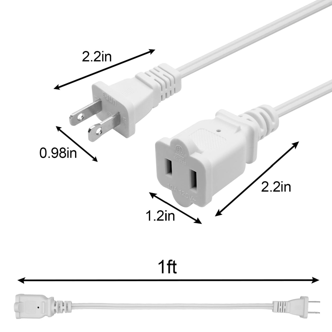 2 Prong Extension Cable 1 Ft,Flexible Small Power Cord 0.3M For Office Or Home,Us Male/Female White Power Cable For Nema 1 15P T