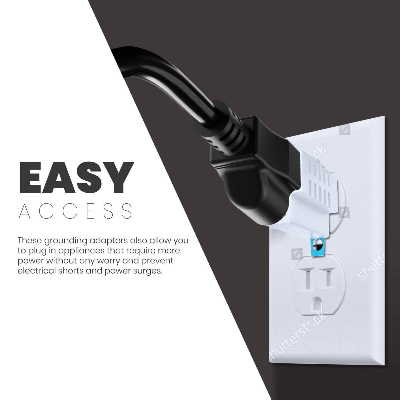 Supply 3-Prong To 2-Prong Grounding Adapter Wall Outlet Plugs, 4 Piece 3 Prong To 2 Prong Converters For Outlets, Electrical, Household, Workshops, Industrial, Machinery, Appliances And Many More. 125V 15A, 1875W Max, Etl Listed, White. The Polarized Grounding Adapter Allows Grounded Two-Slot Outlets To Accept Three-Prong Plugs. Use The Included Mounting Plate To Attach To The Wall Plate Which Adds Extra Protection.