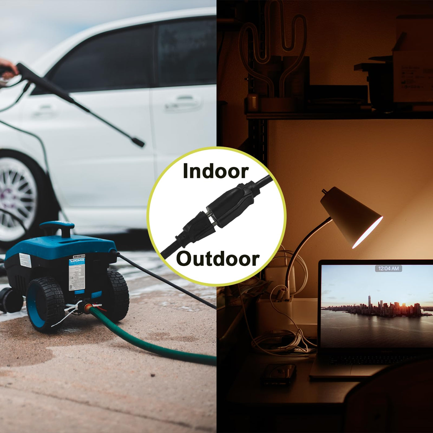 Q: Is the extension cord safe for outdoor use in extreme weather conditions?A: Yes, the extension cord is designed for all-weather durability, with a PVC jacket that protects against moisture, abrasion, and extreme temperatures ranging from -40°F to +140°F.