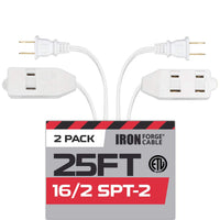 Q: How many extension cords are included in the pack?A: This product comes in a 2 pack, providing you with two 25-foot white extension cords.