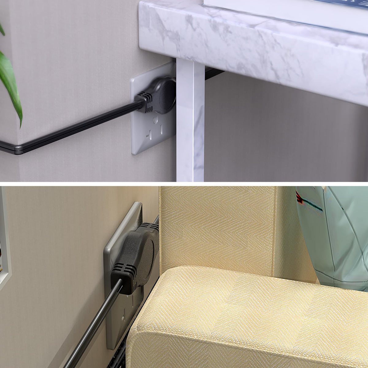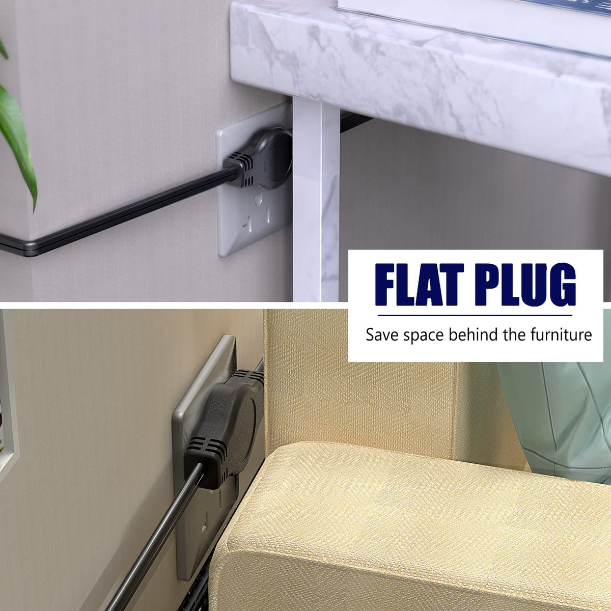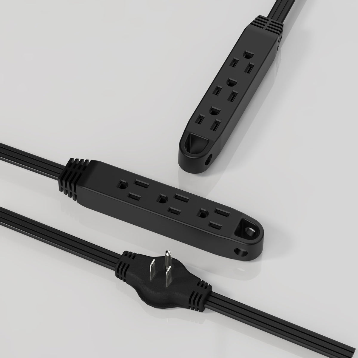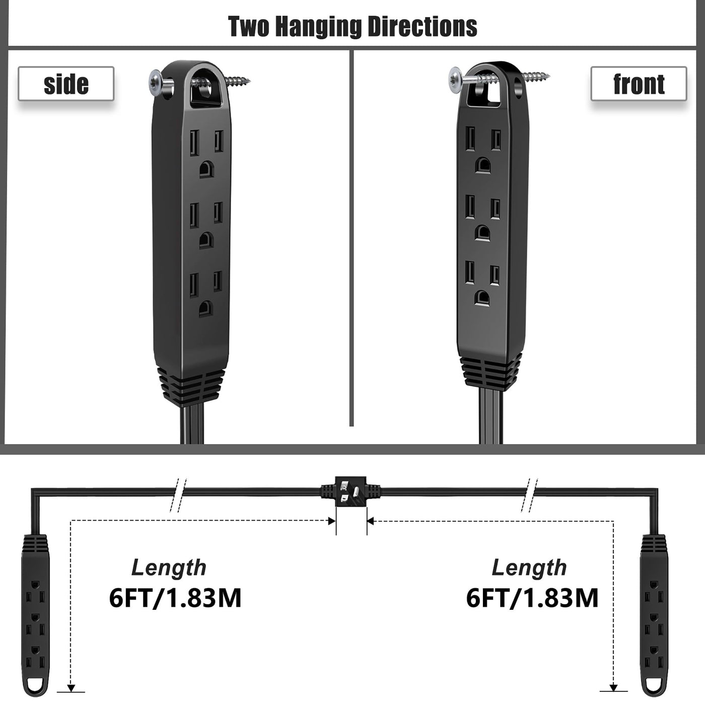 Twin Extension Cord 12Ft Double Cord 6 Ft Each Side Slim Flat Head Extension Cord Total 6 Outlets With Safety Cover, Black. 12Ft Twin Power Cord, 6Ft Extension Cords On Each Side From The Splitter In The Middle. Slim Design Allows You To Hide Behind Any Sofa Set, Tv Set, Bed, Couch, Table, Dresser, Nightstand Or Any Other Furniture.