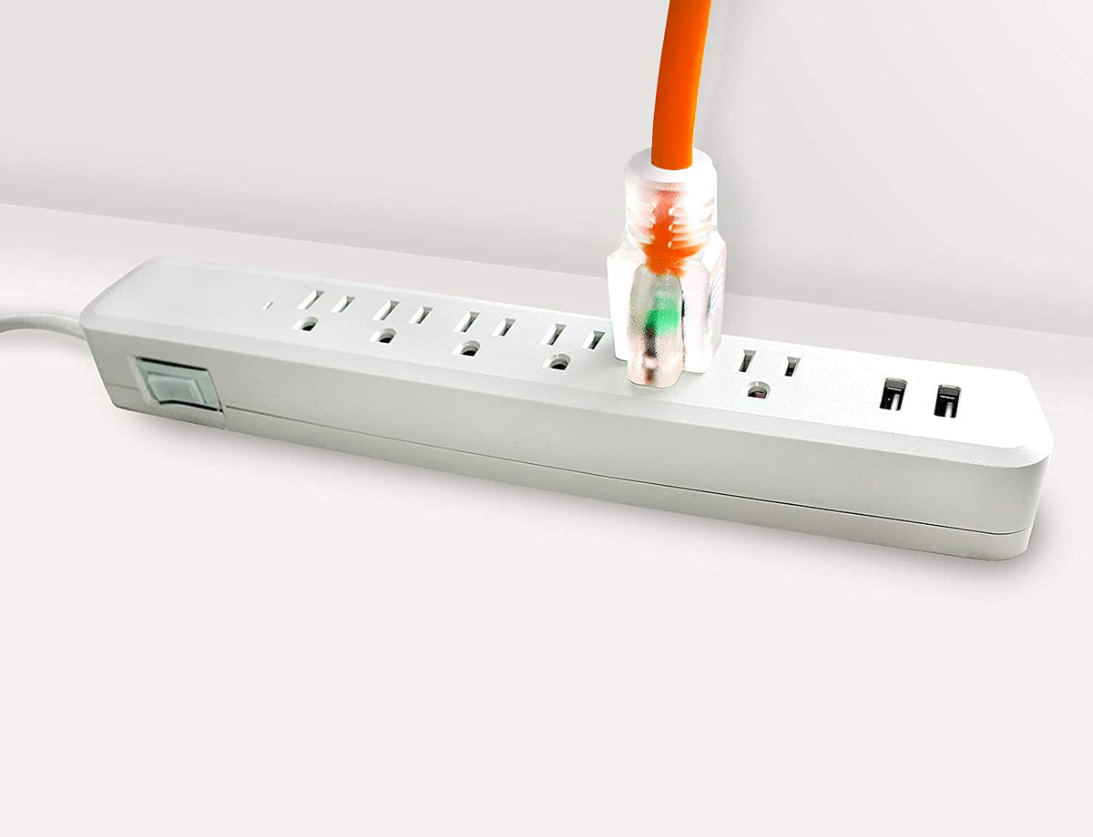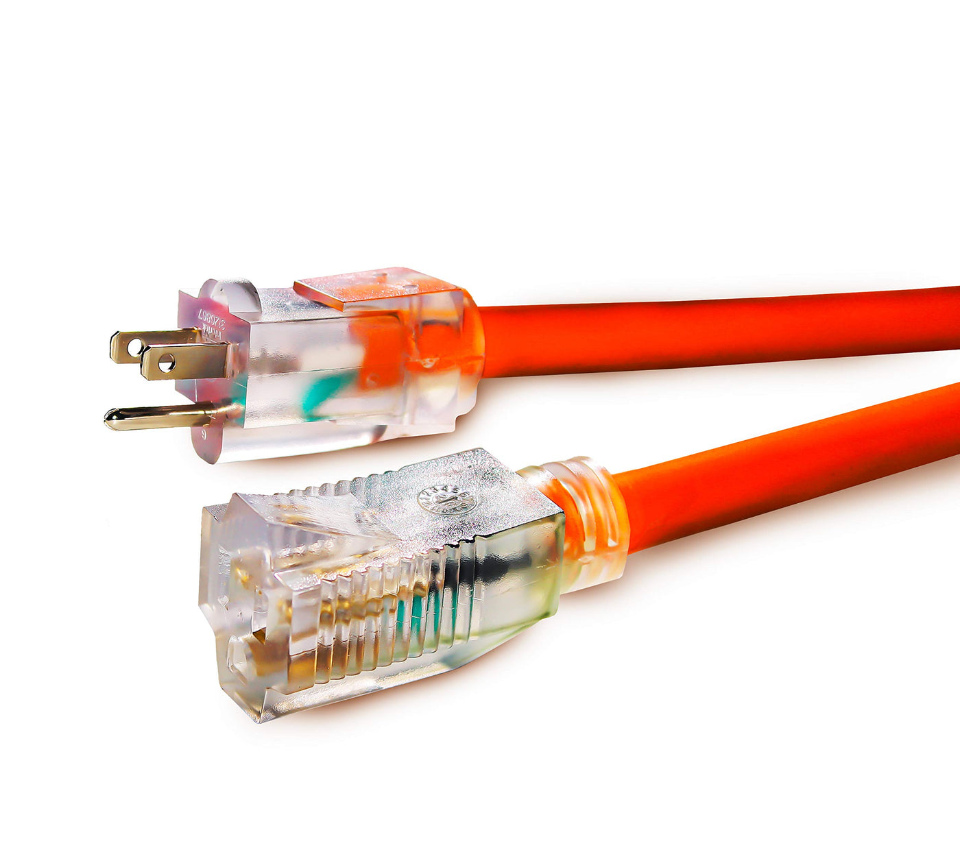 Q: Does the extension cord have any safety features?A: Yes, it features a lighted end that indicates power, enhancing visibility and safety, especially in poorly lit areas.