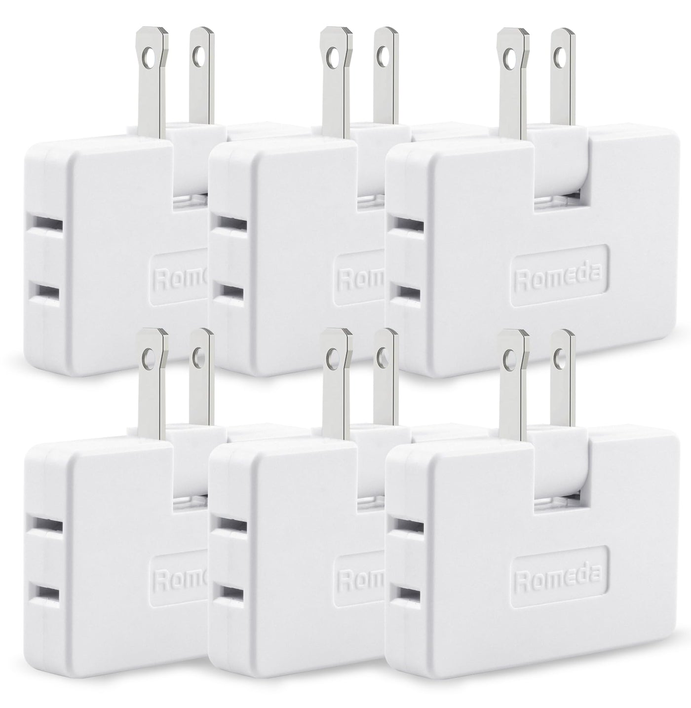 6 Pack Ac Flat Wall Outlet Extender Flat Plug Adapter Outlet, Fold Able 3 Way Wall Adapter Mani Plug For Home And Travel (White)