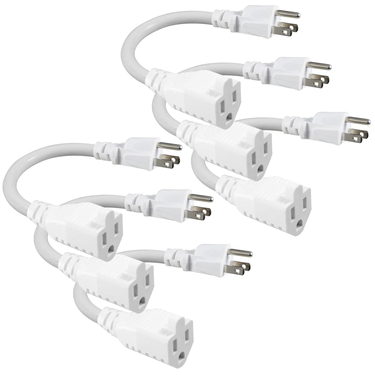 [6 Pack] White Short Power Extension Cord 6Inch 3 Prong Mini Indoor Grounded Extension Cord,16Awg Small Electrical Ac Extensio