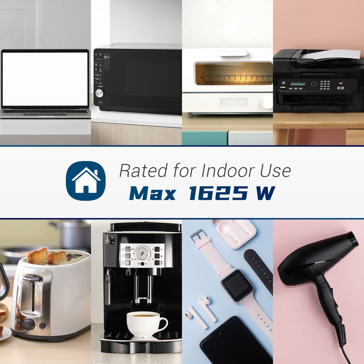 Q: Is this extension cord safe for high-powered devices?A: Yes, this extension cord is rated for 13A and 1625W, making it suitable for a variety of high-powered devices. It is also ETL Listed, ensuring it meets safety and quality standards for electrical products.