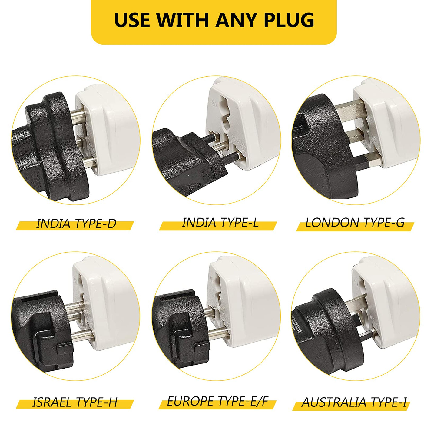 Q: What devices can I use with the 8 Pack Universal Adapter?A: The 8 Pack Universal Adapter is compatible with a wide range of electronic devices, including smartphones, Bluetooth speakers, laptops, tablets, power boxes, and other digital products that operate on voltages between 110V and 250V.