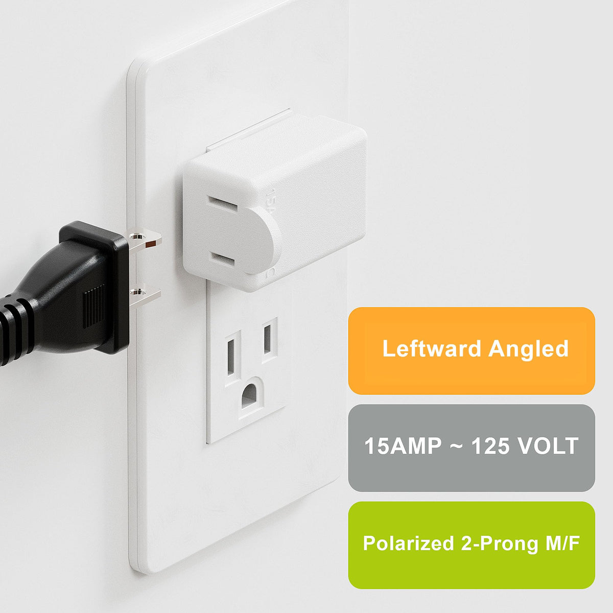 Q: What makes this adapter a space saver?A: The left-angled design of the adapter allows plugs to sit flush against the wall, which minimizes the space taken up by cords and prevents them from protruding into pathways. This is particularly useful in tight spaces behind furniture where conventional plugs may be difficult to access.