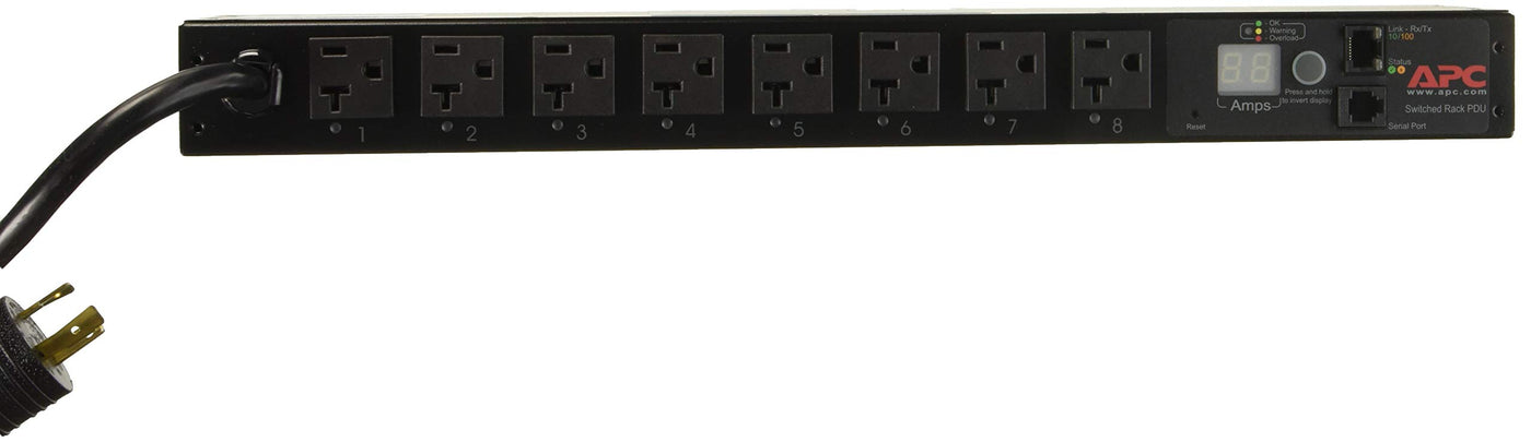Q: What is the maximum load capacity of the APC Rack PDU?A: The APC Rack PDU has a maximum load capacity of 20A, which is suitable for powering multiple devices efficiently in a rack-mounted environment.