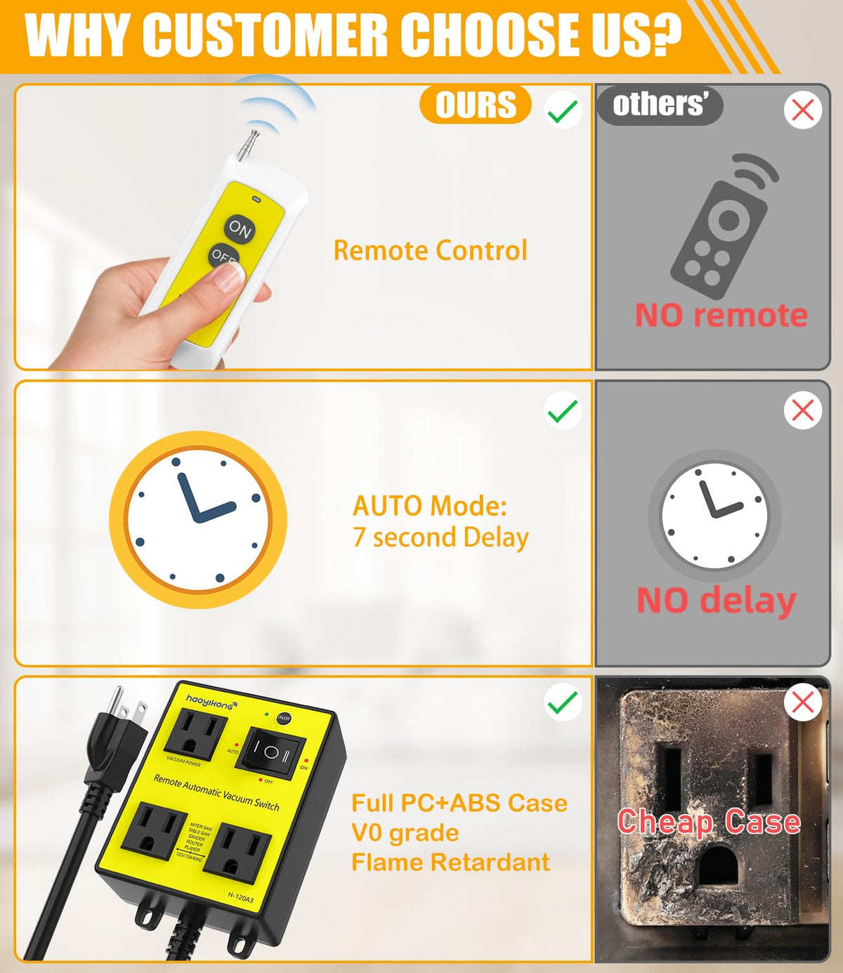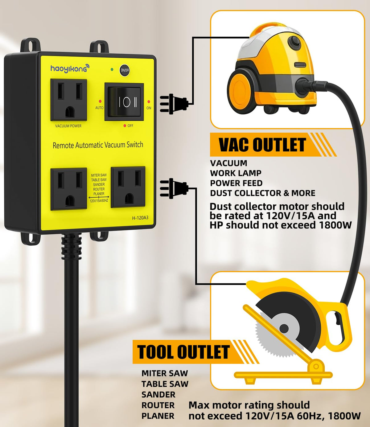 Automatic Vacuum Switch With Remote, Auto Vacuum Switch For Various Power Tools, Dust Collector On/Off Delay To Prevent Circuit