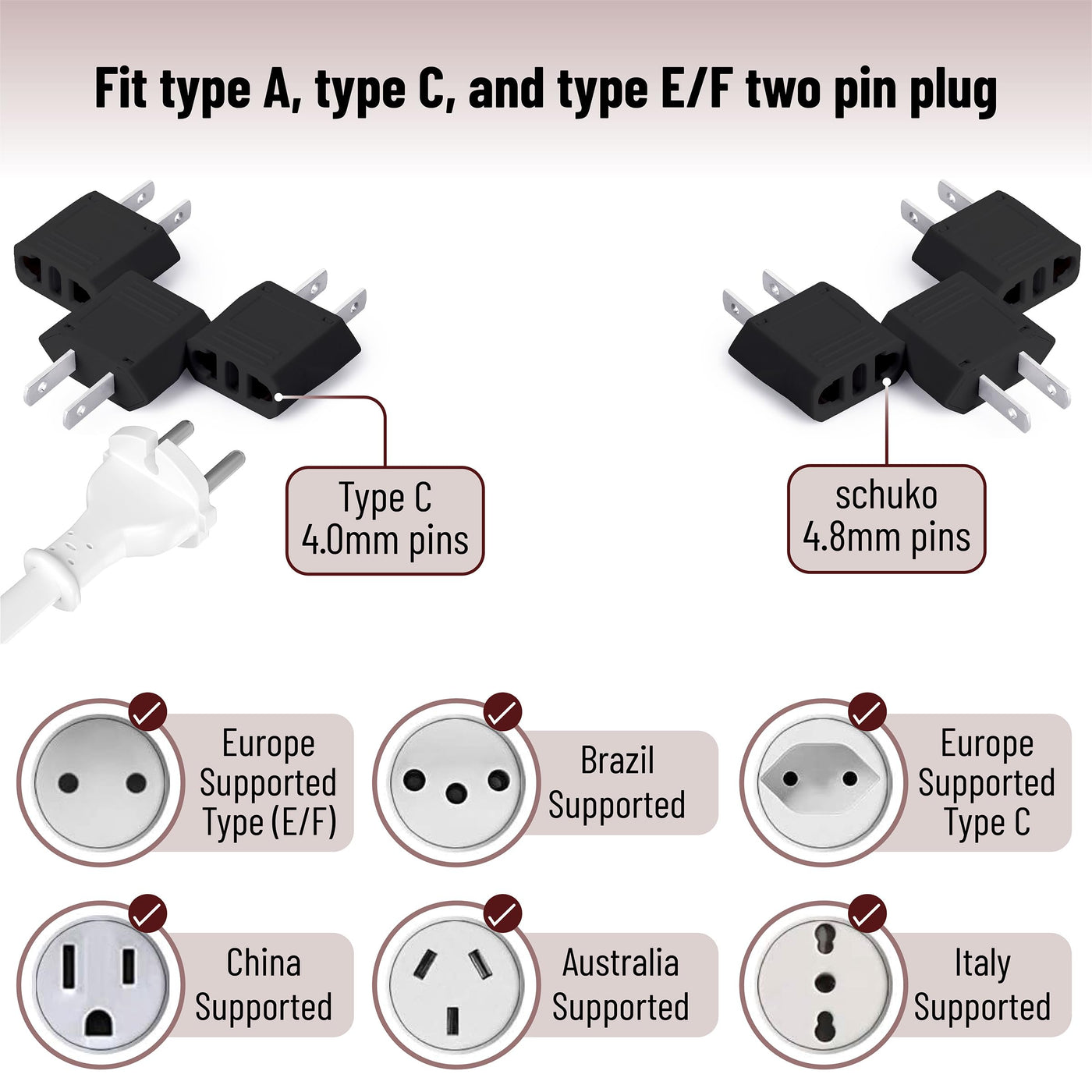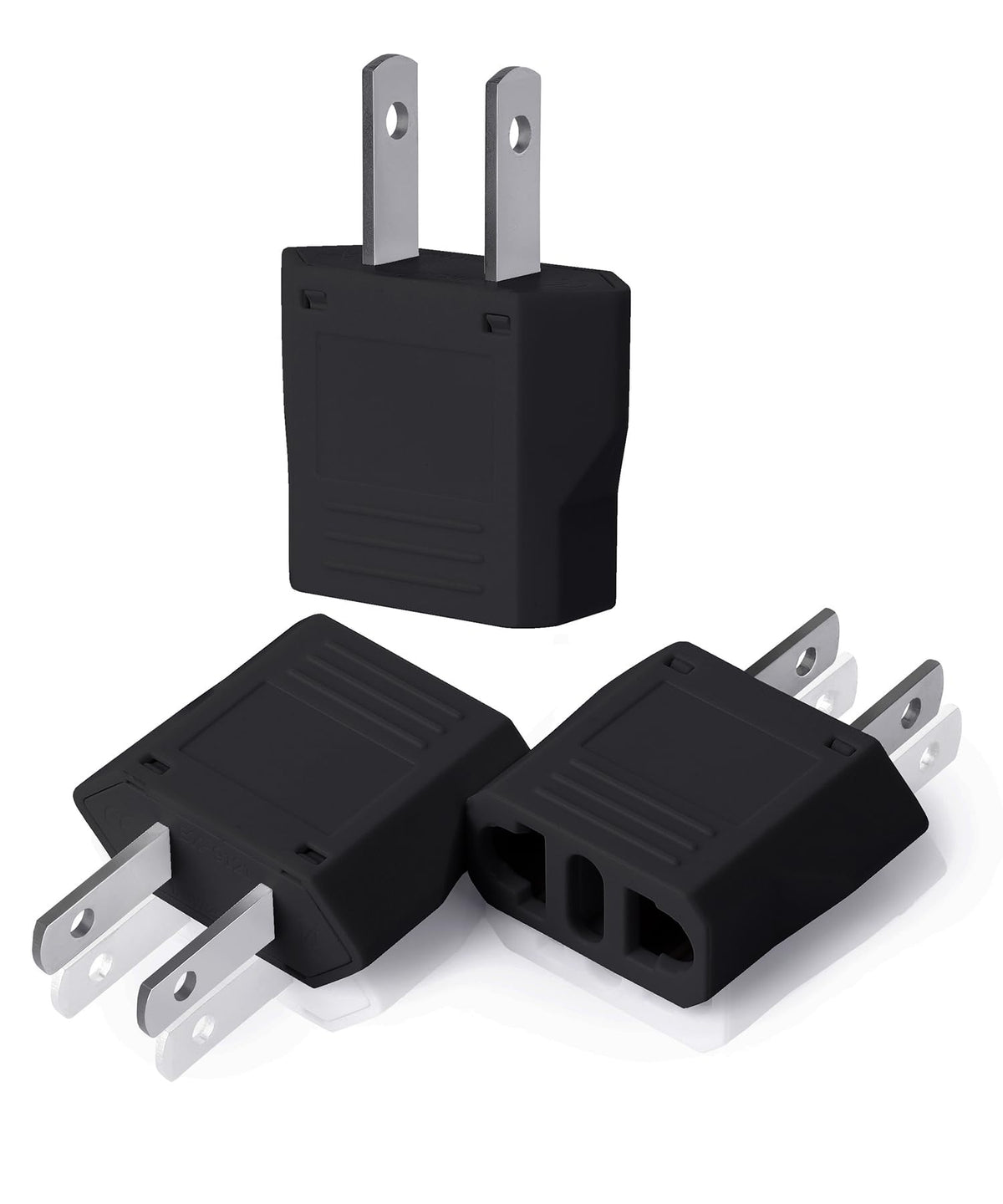 Bates Europe To Us Plug Adapter, 3 Pack, Black, European To Us Plug Adapter, Eu To Us Plug Adapter, Adapter Europe To Usa, Uk T