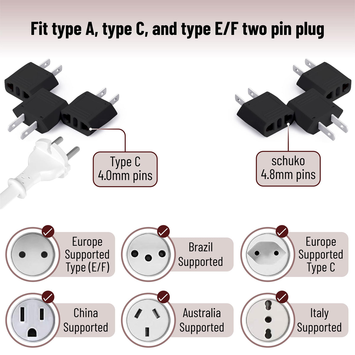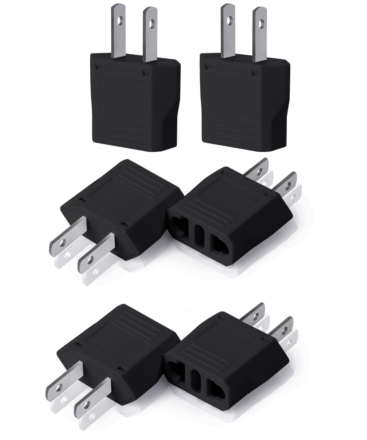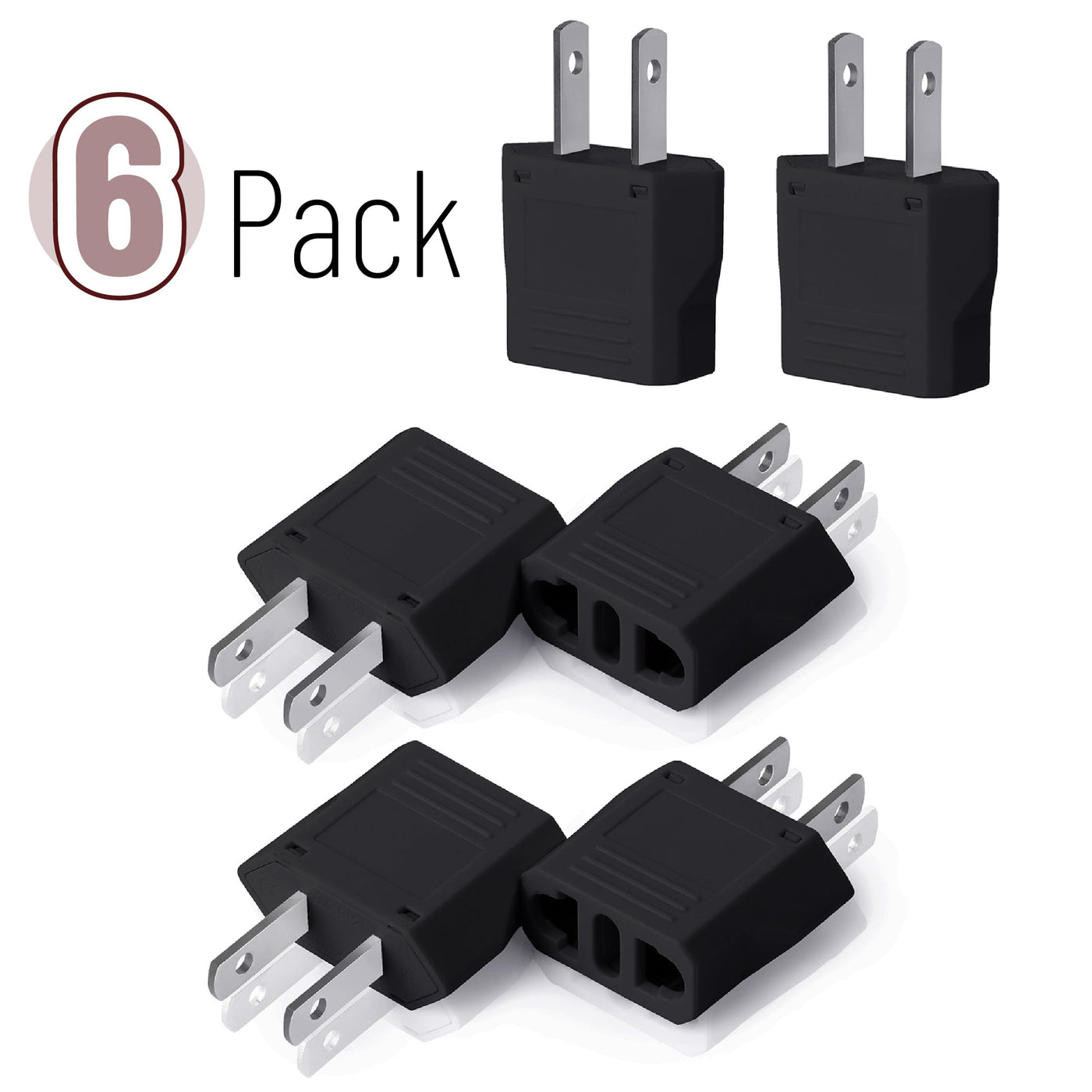 Bates Europe To Us Plug Adapter, 6 Pack, Black, European To Us Plug Adapter, Eu To Us Plug Adapter, Adapter Europe To Usa, Uk T