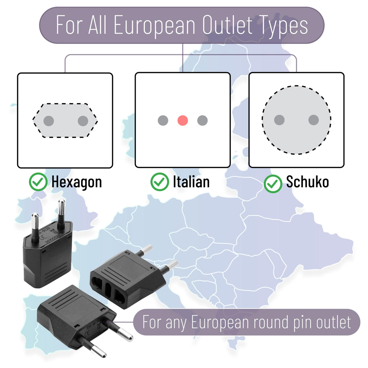 Bates European Plug Adapter Set Includes Three Pieces, Designed To Enable The Use Of American-Style Plugs In European Outlets, Perfect For Travelers Or Those With Electronic Devices From The Us. Each Adapter In This Set Is Compact And Lightweight, Making Them Easy To Pack And Carry In Luggage Or Travel Bags Without Taking Up Much Space. Made With High-Quality Materials, These Adapters Are Black In Color And Are Built To Last, Ensuring Reliability And Longevity For Continuous Use. The Plug Adapters Are Designed For Simplicity And Ease Of Use, Featuring A Straightforward Plug-And-Play Design That Requires No Complicated Setup Or Additional Tools. Bates European Plug Adapters Prioritize Safety With Secure Connections And Compatibility, Reducing The Risk Of Damage To Your Electronic Devices While Abroad.
