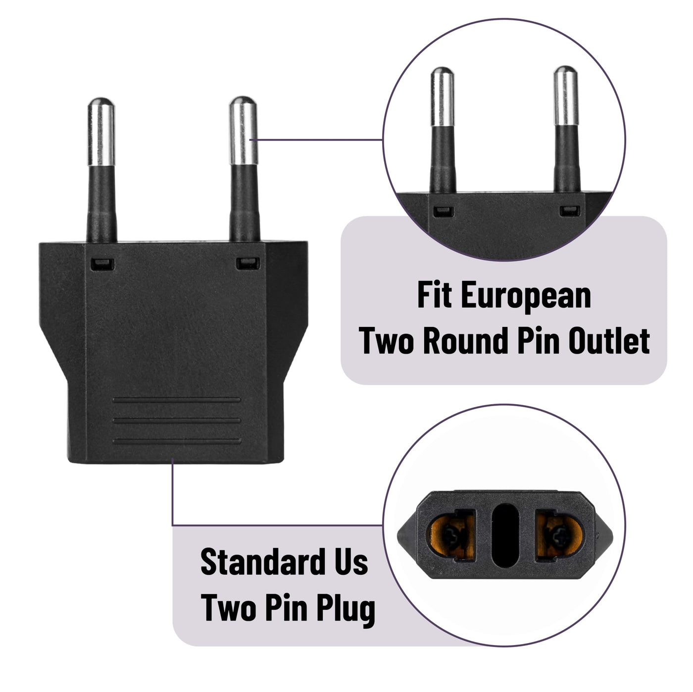 Bates European Plug Adapter, 3 Pcs, Black, Travel Adapter, Us To Europe Plug Adapter, Eu Adapter, Electrical Adapters, Converte