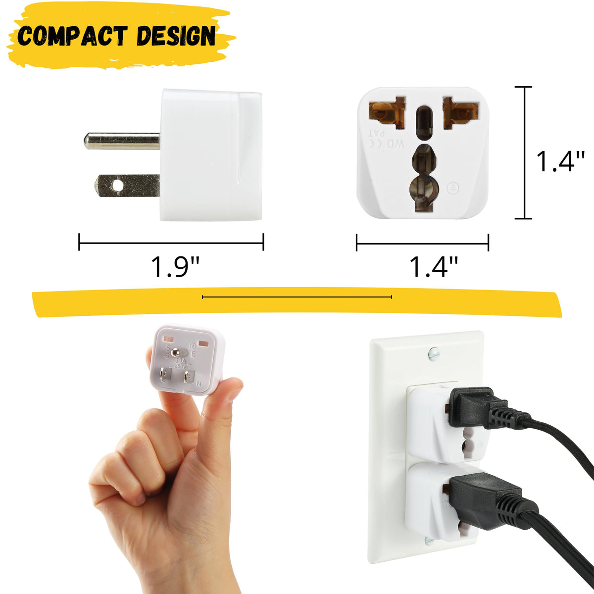 Q: How compact is the Bates Universal Adapter for travel?A: The Bates Universal Adapter is compact and lightweight, allowing you to easily pack it in your luggage, carry-on, or even in your pocket, making it an ideal travel companion.