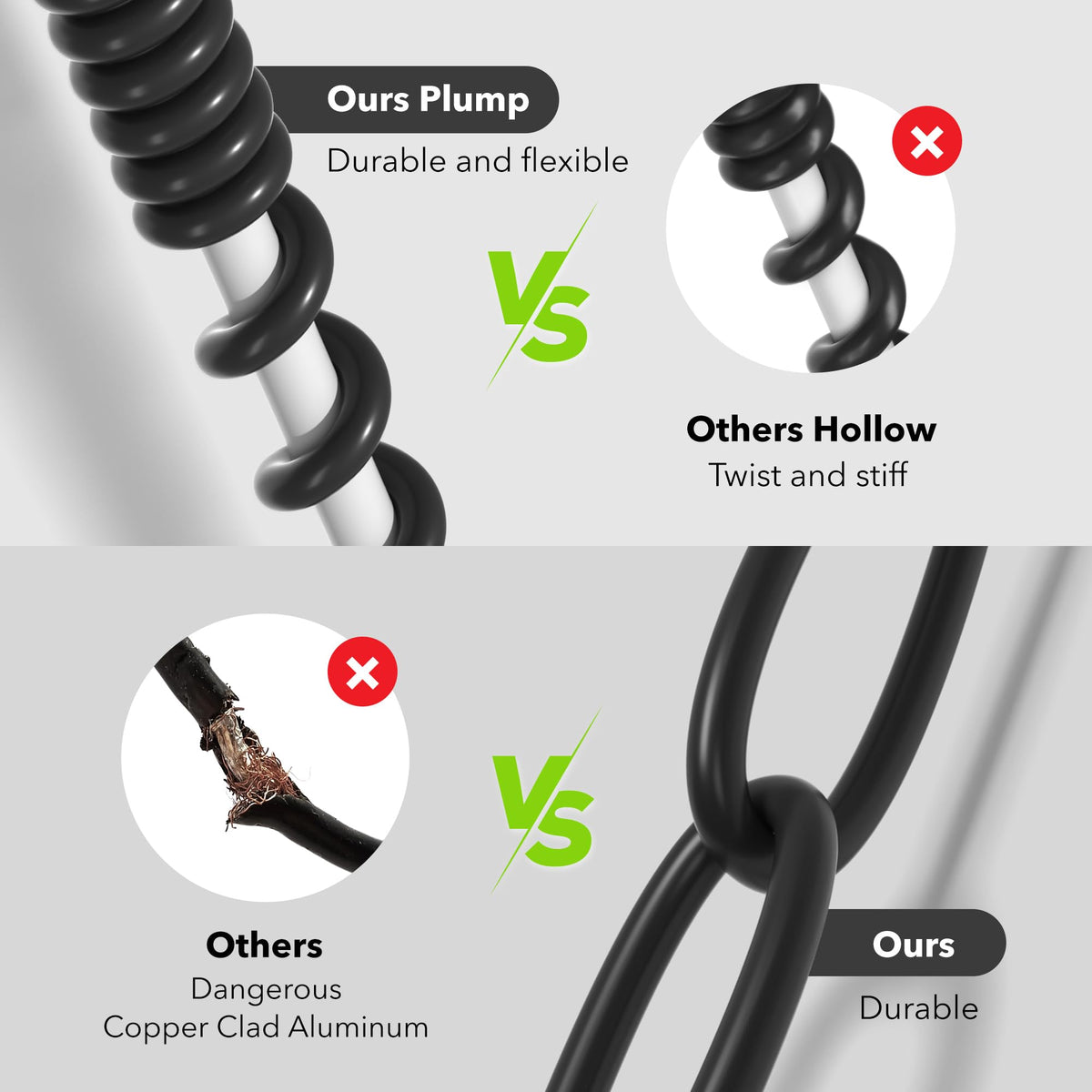 Q: What makes this extension cord suitable for long-term use?A: This extension cord is built with heavy-duty materials that include a reinforcement sheet and stress relief device, effectively preventing bending or breaking at the connection point, which extends its service life.