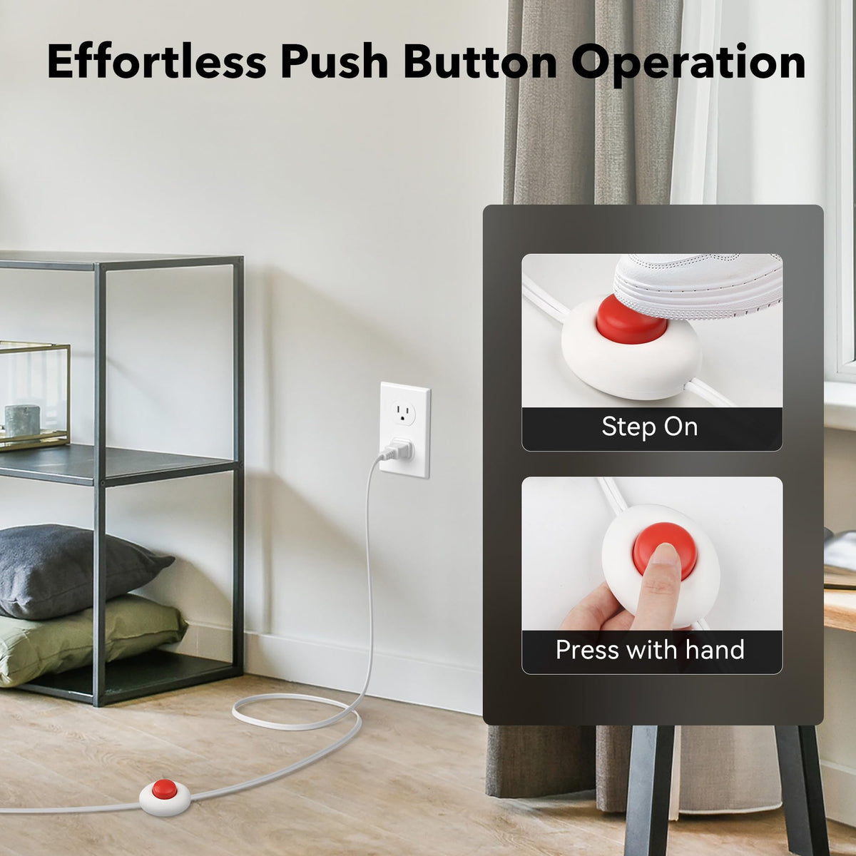 Q: How does the foot switch work on this extension cord?A: The foot switch on the BN-LINK extension cord allows you to easily control your devices without bending down. Simply plug in your devices, and you can turn them on or off using the foot switch, which is positioned 4ft from the plug and 8ft from the outlets for added convenience.