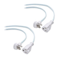 Connect More With Cable Matters Ac Power Products Low-Profile Braided Extension Cord The Cable Matters Low-Profile Right-Angle Extension Cord With Braided Cable Jacket Extends The Length Of A Short Power Cable. It Is Universally Compatible With Most Small Appliances And Electronics. This Cost-Effective 2-Pack Provides A Spare Cord For A New Electronics Purchase. Find The Right-Angle This Right-Angle Cord Plugs Into A Grounded Ac Outlet And Extends The Cord To The Right. This Low-Profile Plug Extends Less Than 1 Inch From An Ac Outlet. Braided Form &Amp; Function The Sturdy Braided Cable Jacket Is Tangle-Resistant With A Touch Of Color For An Attractive Look. Sturdy &Amp; Safe With A Lifetime Warranty The Combination Of 16 Awg Gauge Conductors, A 13 Amp/125 Volt Rating, And Connectors With Molded Strain Relief Provides A Safe And Reliable Power Extension Cord. A Lifetime Warranty Is Included With This Power Cord For Peace Of Mind When Purchasing. Important Notes - Connected Cord Should Be To The Right Of The Ac Outlet In Tight Spaces - This Power Cord Is Rated For Indoor Use - Check The Voltage And Amp Rating Of Your Equipment To Ensure Compatibility Ac Power Cord Specifications - Type: 3-Conductor - Connector A: Nema 5-15 Power Plug (North America) Male - Connector B: Nema 5-15R Female - Wire Gauge: 16 Awg - Amp Rating: 13A Max - Voltage Rating: 125V Max Package Contents 2X Low-Profile Ac Power Extensions Cord Warranty Limited Lifetime Warranty And Product Support