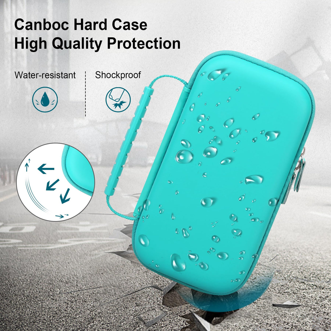 Q: What materials are used in the Canboc Travel Carrying Case?A: The Canboc Travel Carrying Case is made from high-quality smear-proof PU leather and a durable hard EVA shell, providing semi-water resistance and protection against dust, dirt, and scratches.