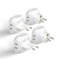 Ceptics Europe Travel Adapter Plug Set Schuko 4 Input Ultra Compact Light Weight Type C, Type E/F Usa To Any Type C E/F Countries Such As Germany, France 4 Pack (Pt 9 9C 4Pk),White