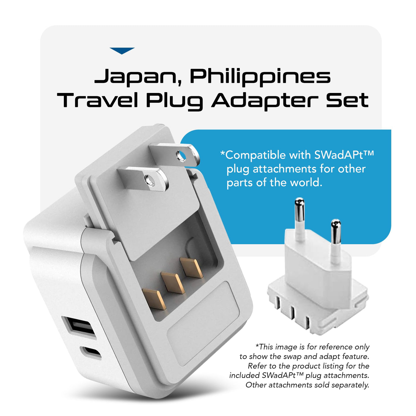 Ceptics Japan, Philippines Power Travel Plug Adapter Set, 20W Pd & Qc, Safe Dual Usb & Usb C 3.1A 2 Usa Socket Compact Use