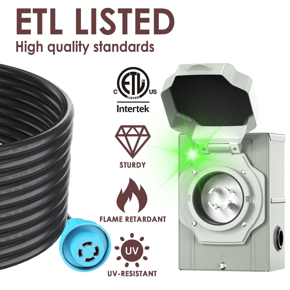 Circlecord 4 Prong 6.6 Feet 30 Amp Generator Extension Cord And Inlet Box With Locking Connector, Heavy Duty Nema L14 30P/L14 30