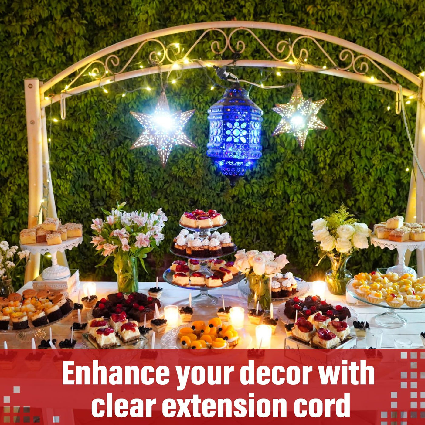 Q: How does the clear design of the extension cord benefit my holiday decorations?A: The transparent design of the extension cord allows it to blend seamlessly into your holiday decor, ensuring that your lights remain the focal point and enhancing the overall aesthetic of your festive arrangements.
