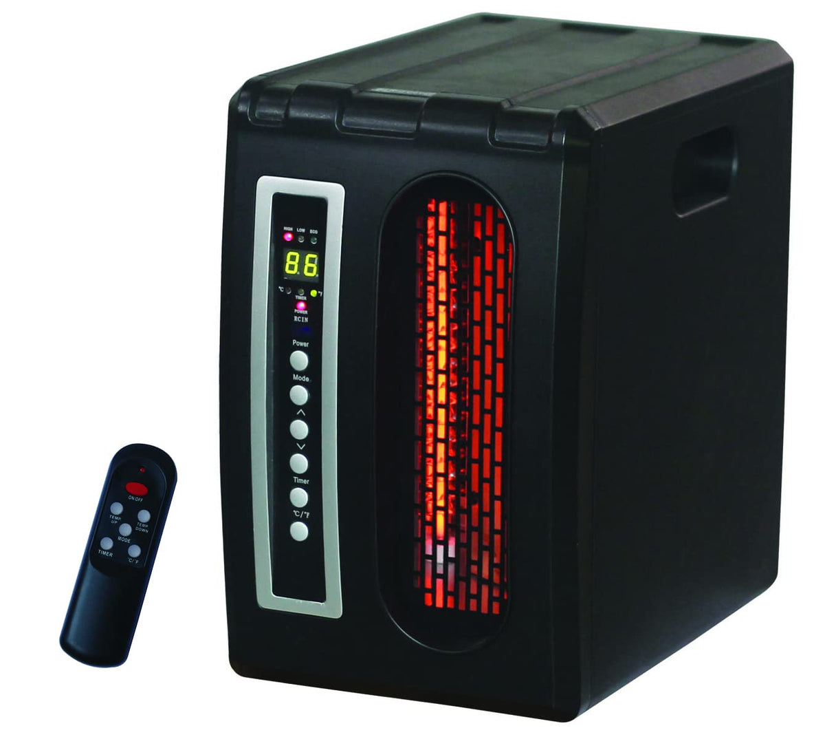 This Compact Infrared Quartz Heater Has The Same 5,120 Btu Output As Larger Quartz Heaters Its Smaller Profile And Modern Look Makes It Ideal For Many Applications Can Use On Desktop Or Floor High Volume Fan Provides Superior Heat Distribution Remote Control With 12 Hr Programmable Times Eco Setting Provides Efficient Power Use 3 Infrared Quartz Heating Elements Accidental Overheat And Tip-Over Protection Gently Warm The Air Cool-Down Cycle Extends Quartz Heating Element Lifespan