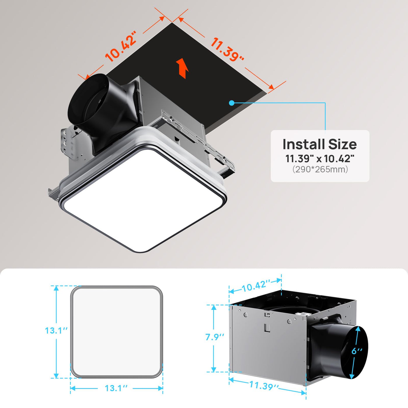 Consciot Bathroom Exhaust Fan With Light, 110/160 Cfm Adjustable, 1.0 Sone, Suitable For Square Mounting Hole 11.39 X 10.42 Inch