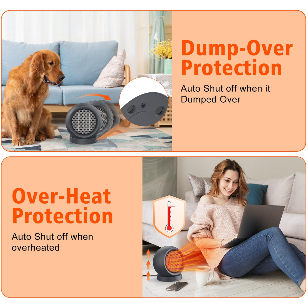 Durable Material: Made from high-temperature resistant ABS material, this small heater is flame-retardant and built to last. You can have peace of mind knowing it won’t overheat, even with prolonged use.