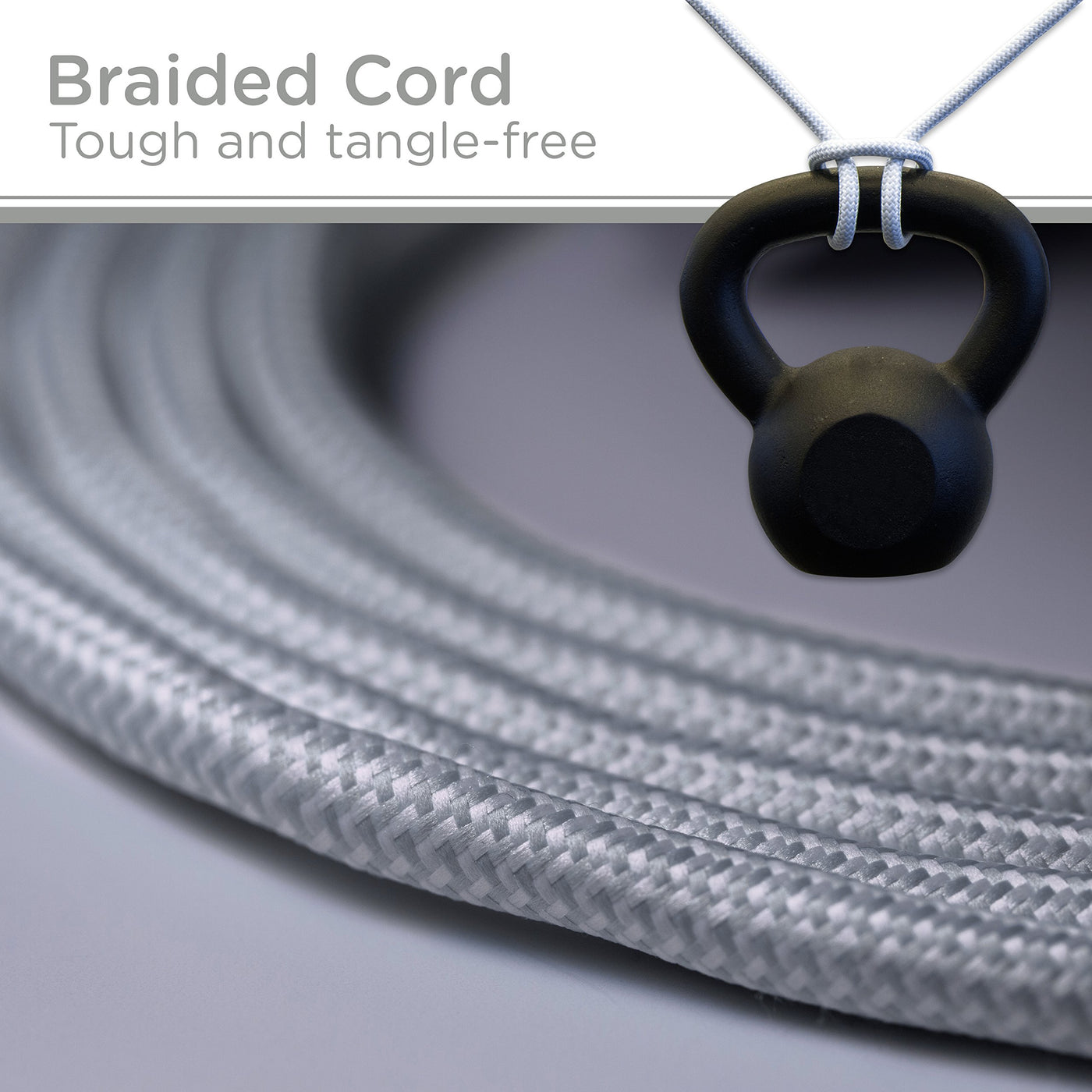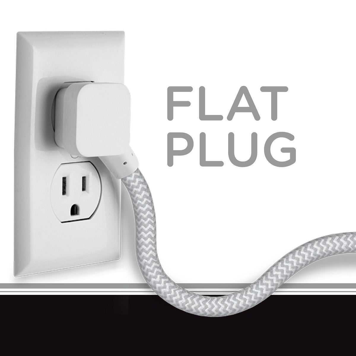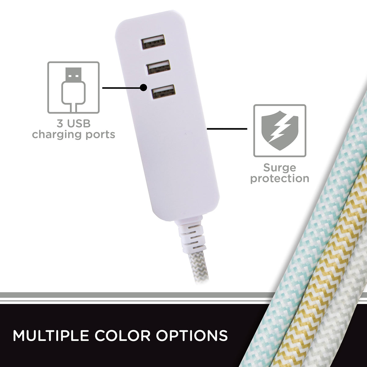 Cordinate Designer 3 Usb Charging Extension Cord With Surge Protection, Gray, Braided D Cor Fabric Cord, 10 Ft, Low Profile Plu