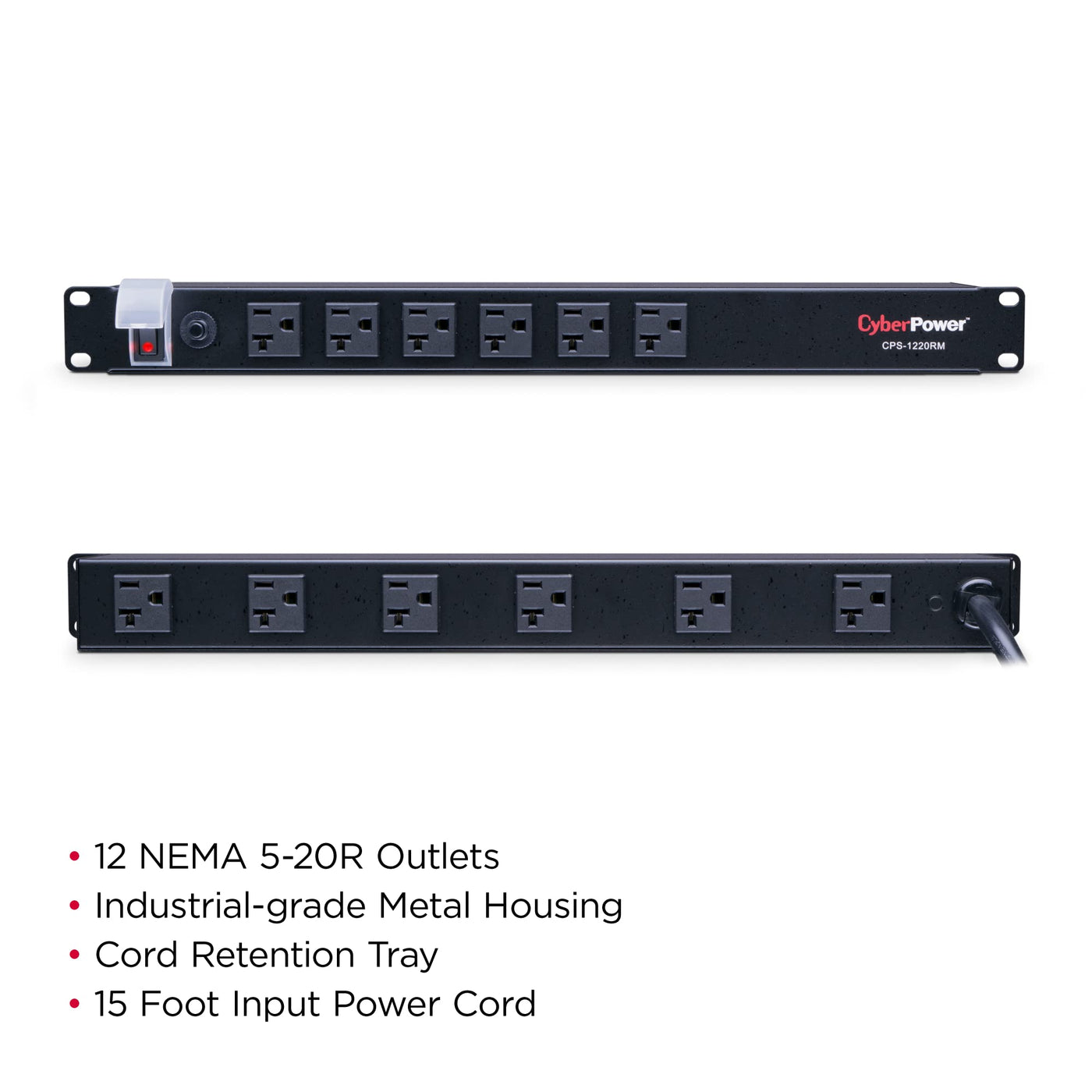 Q: Does the CyberPower CPS1220RM provide surge protection?A: No, the CyberPower CPS1220RM is a basic power distribution unit (PDU) that does not offer surge suppression, designed for unfiltered electrical pass-through.
