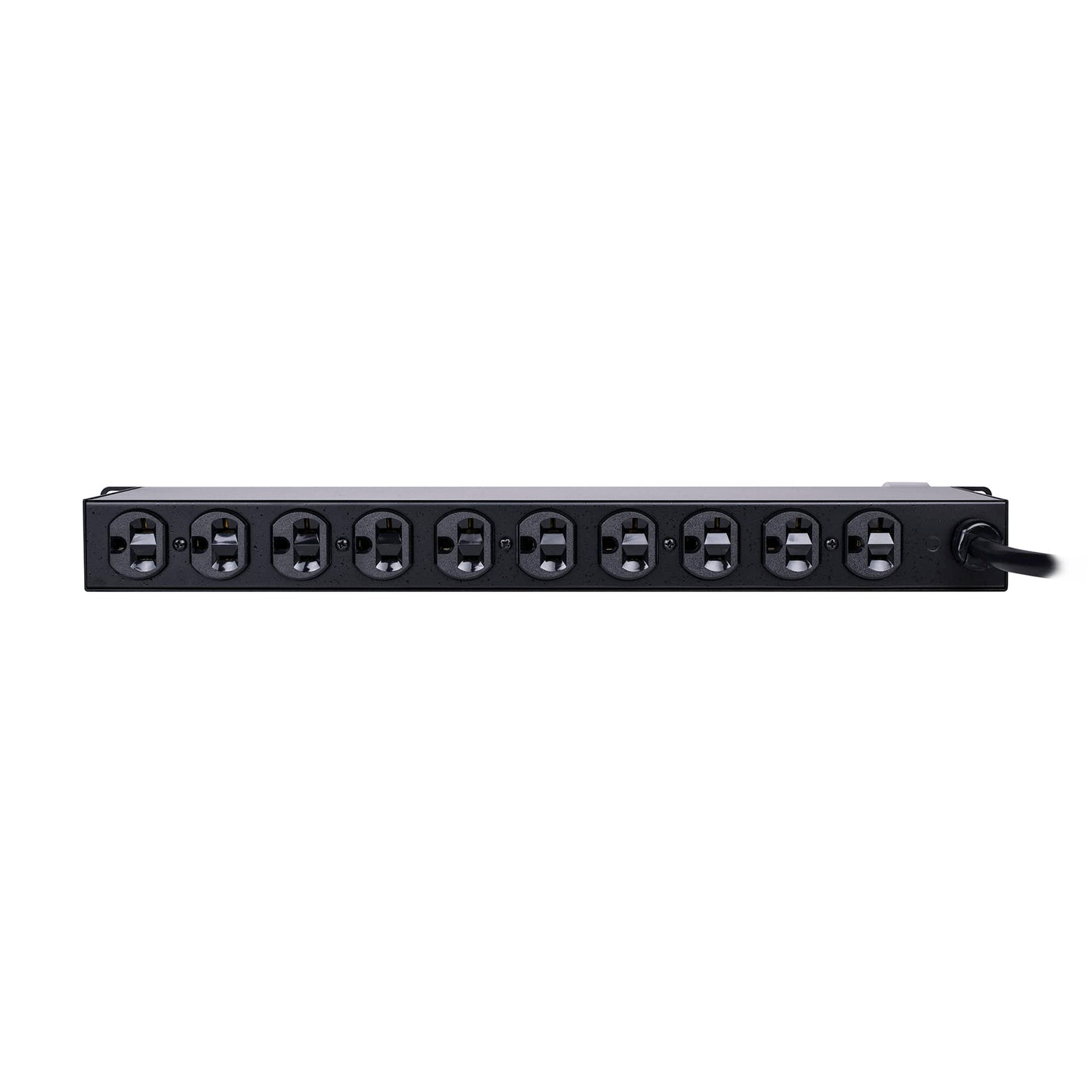 Q: How many outlets does the CPS1220RMS provide and where are they located?A: The CPS1220RMS offers a total of 12 surge-protected NEMA 5-20R outlets, with 2 located at the front and 10 at the rear for easy access and organization.